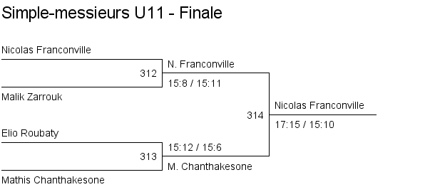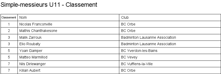 Simple messieurs U11 Matches en groupe Finale Classement |