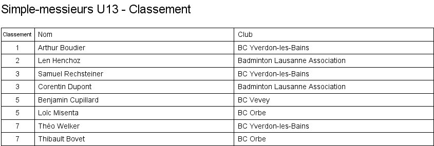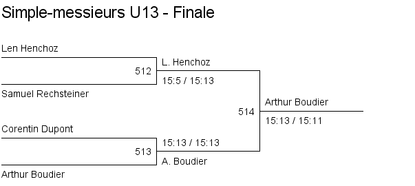 Simple messieurs U13 Matches en groupe Finale Classement |