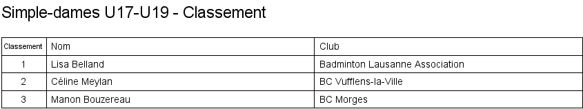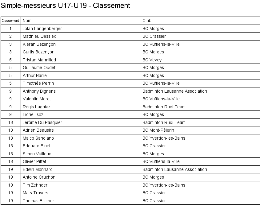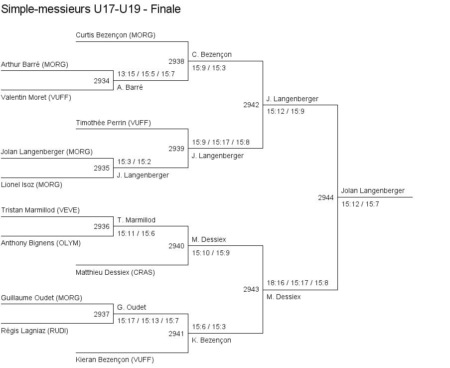 Simple messieurs U17-U19 Matches en groupe Finale Classement |