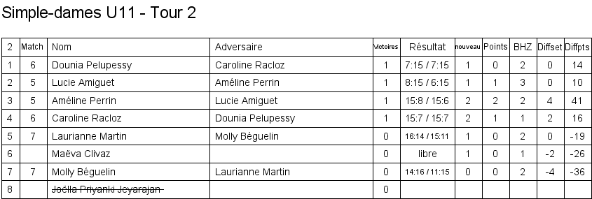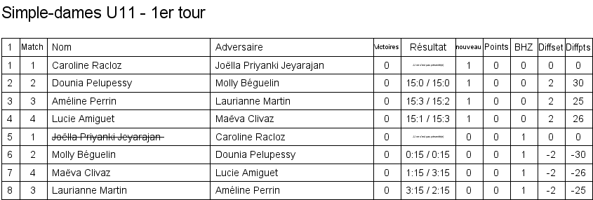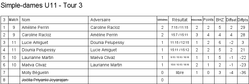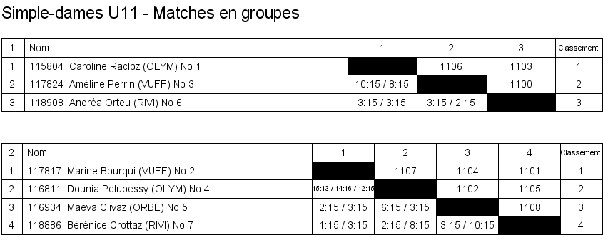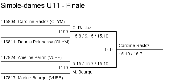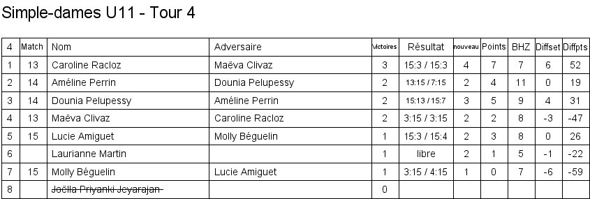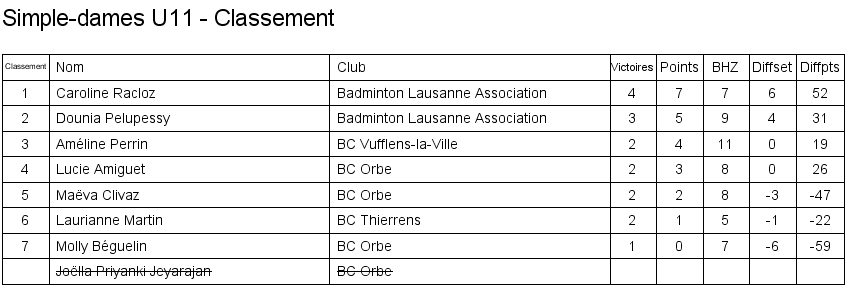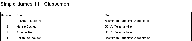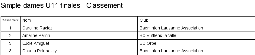 U11 | 1. Caroline Racloz (Lausanne) 2. Marine Bourqui (Vufflens) 3. Améline Perrin (Vufflens) 3. Dounia Pelupessy (Lausanne) |