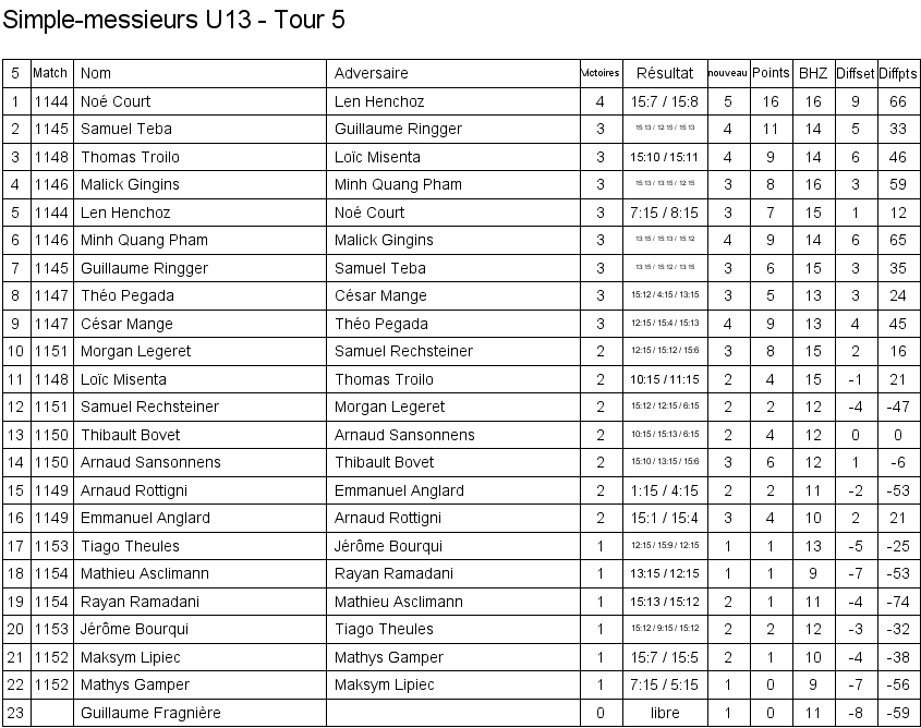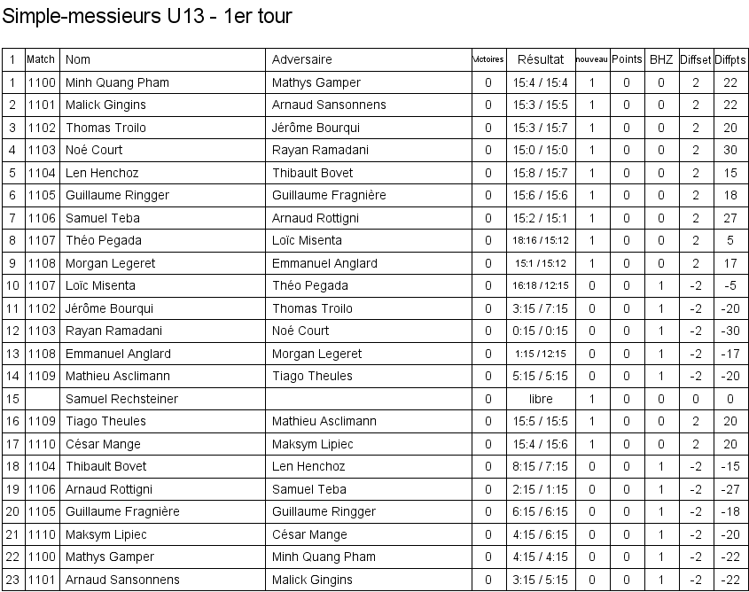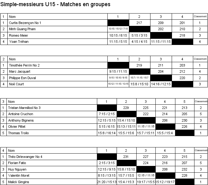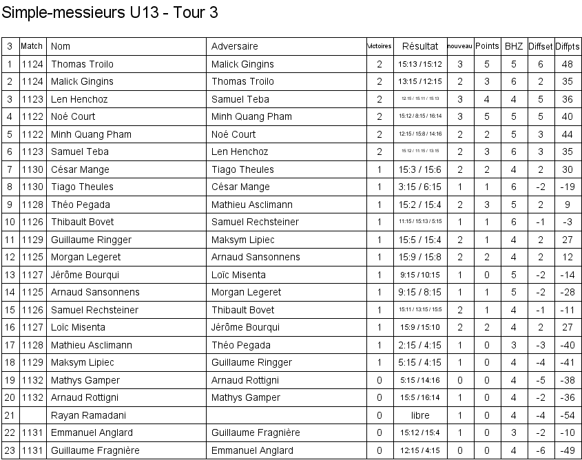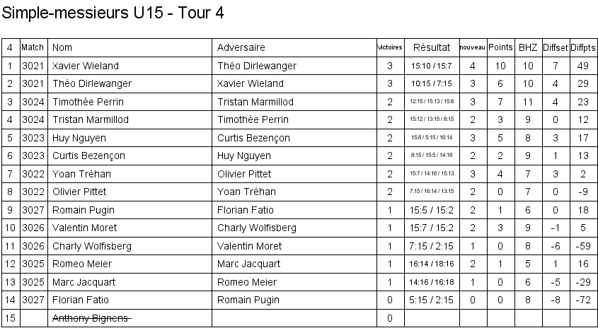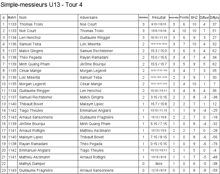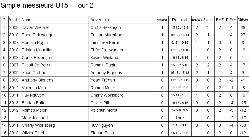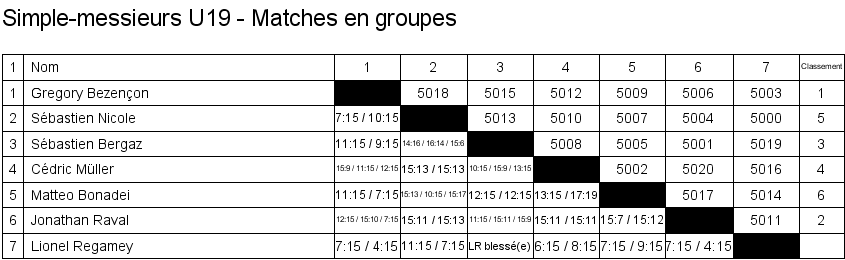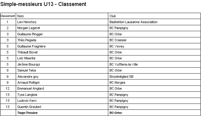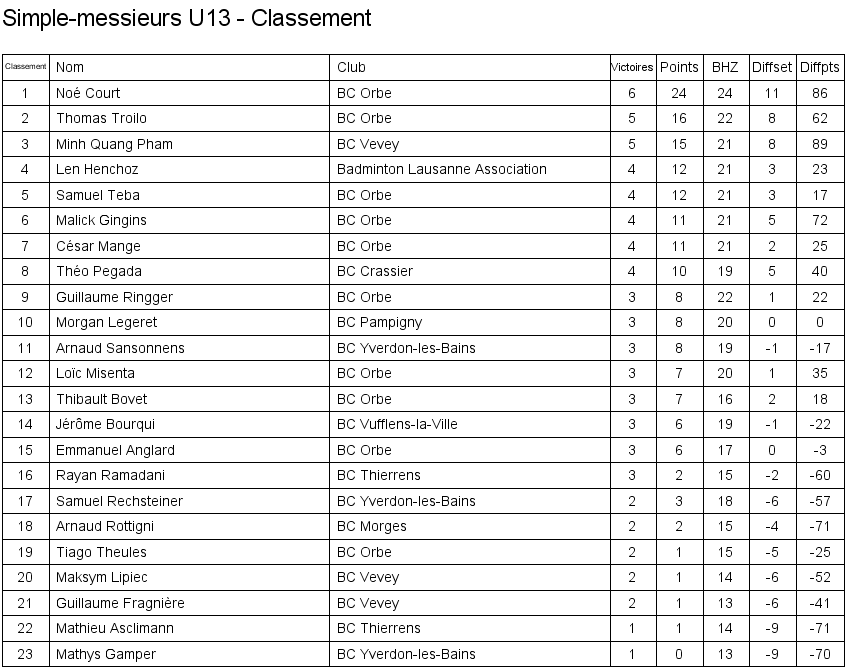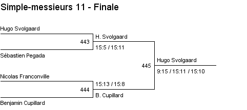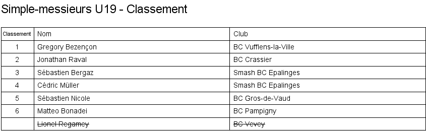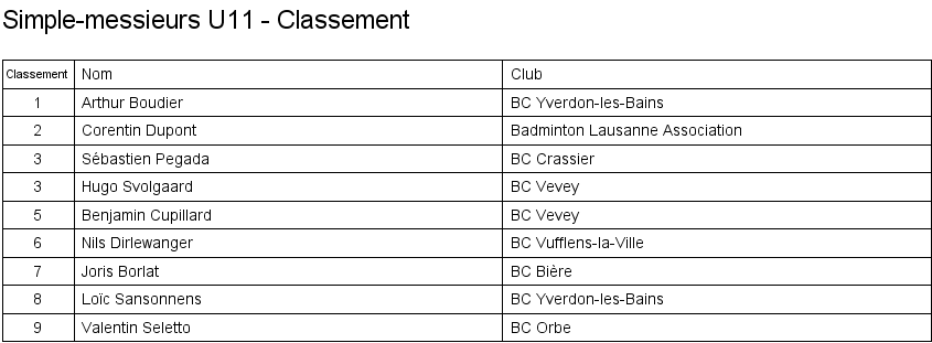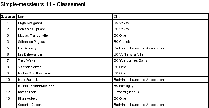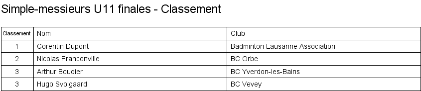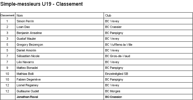 1. Arthur Boudier (Yverdon) 2. Corentin Dupont (Lausanne) 3. Hugo Svolgaard (Vevey) 3. Sébastien Pegada (Crassier) |