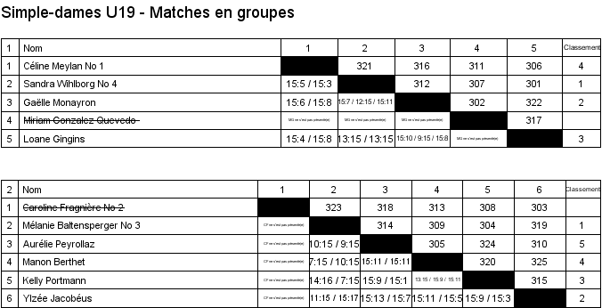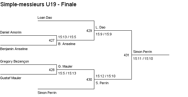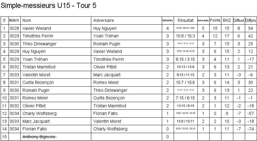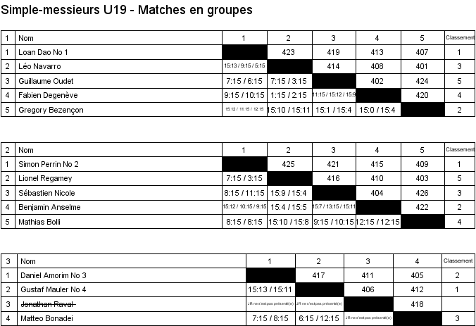 1. Loan Dao (Crassier) 2. Simon Perrin (Vevey) 3. Gregory Bezençon (Vufflens) 3. Kieran Bezençon (Vufflens) |