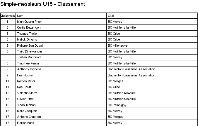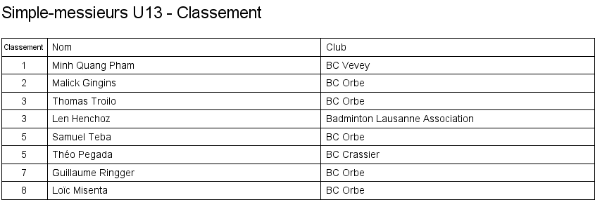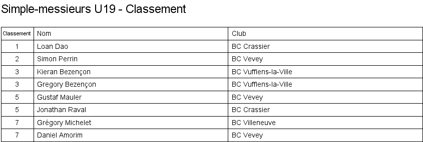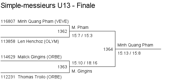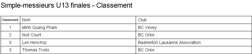 1. Minh Quang Pham (Vevey) 2. Malick Gingins (Orbe) 3. Len Henchoz (Lausanne) 3. Thomas Troilo (Orbe) |