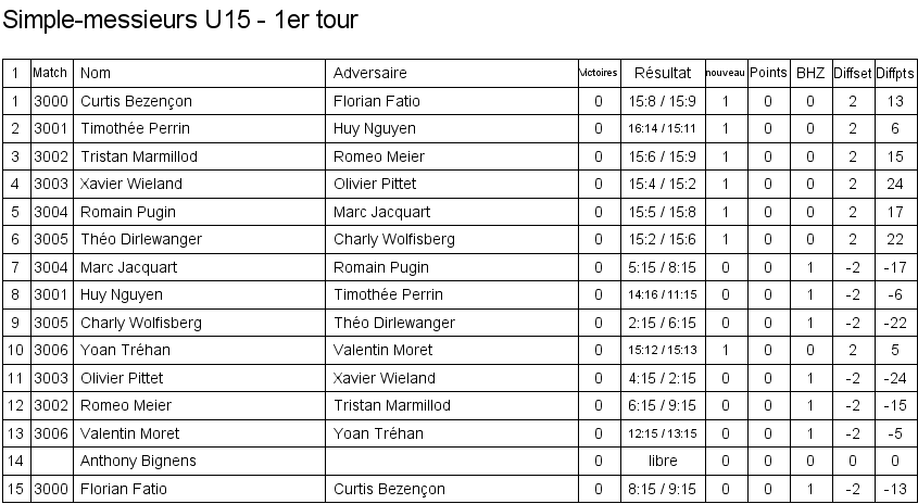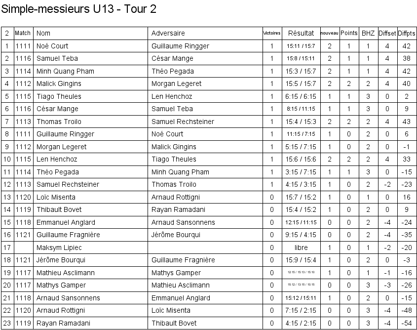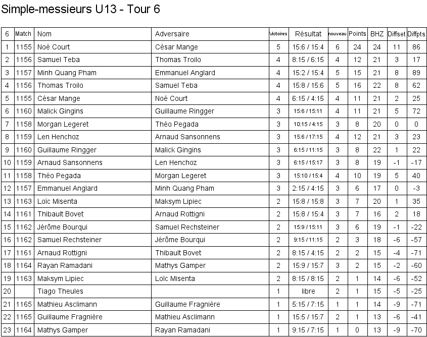Ci-dessous, la liste des qualifié(e)s pour le Master Romand du Circuit Junior, qui aura lieu à Neuchâtel le samedi 22 juin.