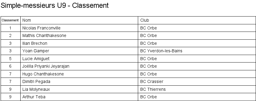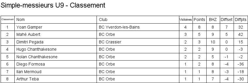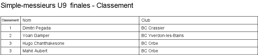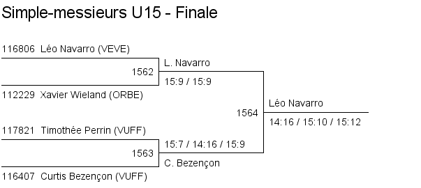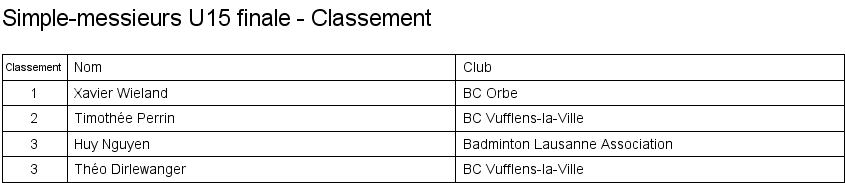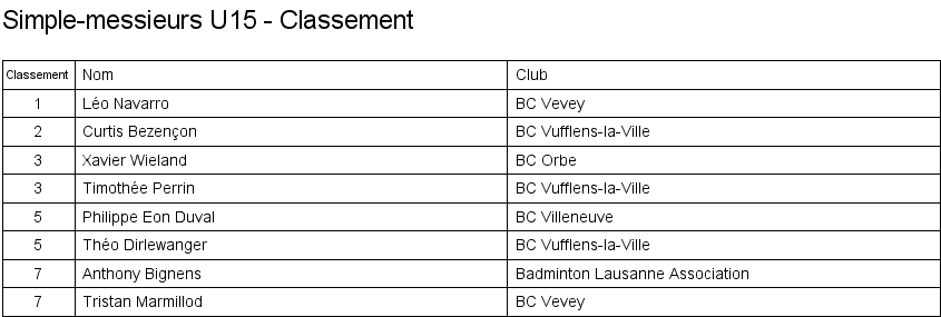 1. Léo Navarro (Vevey) 2. Curtis Bezençon (Vufflens) 3. Timothée Perrin (Vufflens) 3. Xavier Wieland (Orbe) |