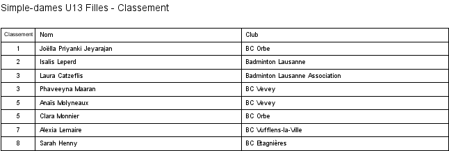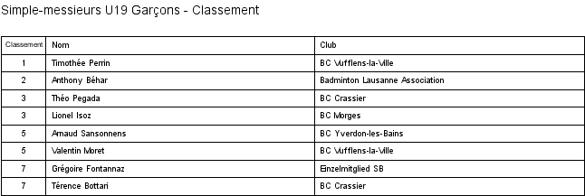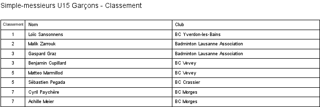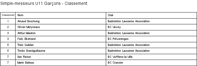 Voici les résultats de l'étape * du Circuit Junior 2017-2018 organisée par le BC Gros-de-Vaud le 14 Janvier 2018 : Résultats (PDF) et sur Swiss Bad.