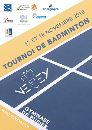 Le BC Vevey a le plaisir de vous annoncer que l’édition 2018 de son Tournoi de Badminton aura lieu le samedi 17 et dimanche 18 novembre prochains.