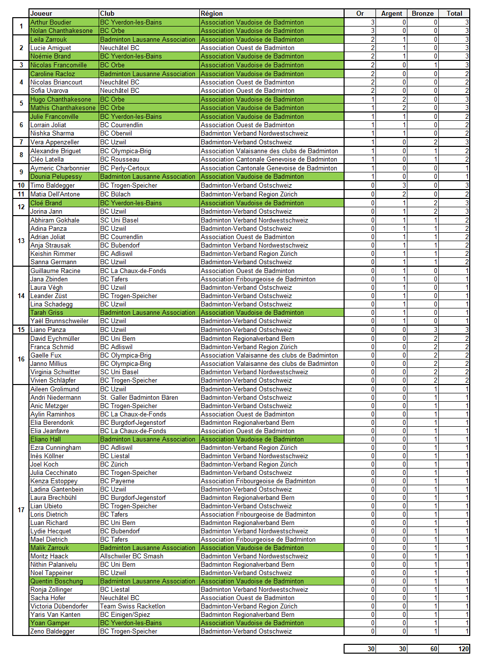 Pour les fans de chiffres, et aussi un peu parce que ça met très bien en lumière le succès du mouvement Junior AVB, voici quelques statistiques sur les Championnats suisses Junior 2020 :